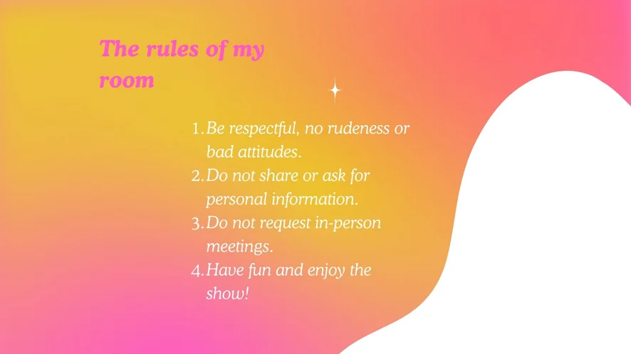 Zezadu, Ahegao, Plácání po zadku, Erotický tanec, Hodnocení péra, Velbloudí palec, Špinavá mluva, Footfetish, Ponižování, Podpatky, Nahoře bez, Twerk, Krátká sukně, Jóga, Masáž, Besos, Slap ass, Slap tits, Feet cream, Suck finger, Suck dildo, Spit dildo, Prstění, Striptýz, Roleplay, Kuřba, Masturbace, Mezi kozy, Orgasmus, Spread pussy, Spread ass, Oil ass, Finger ass, Na koníčka, Sexuální hračky, Hardcore, Honění, Footjob, Dildo nebo vibrátor, Pokyny k masturbaci, Deepthroat, Olejová show, Anál, Ženský výstřik